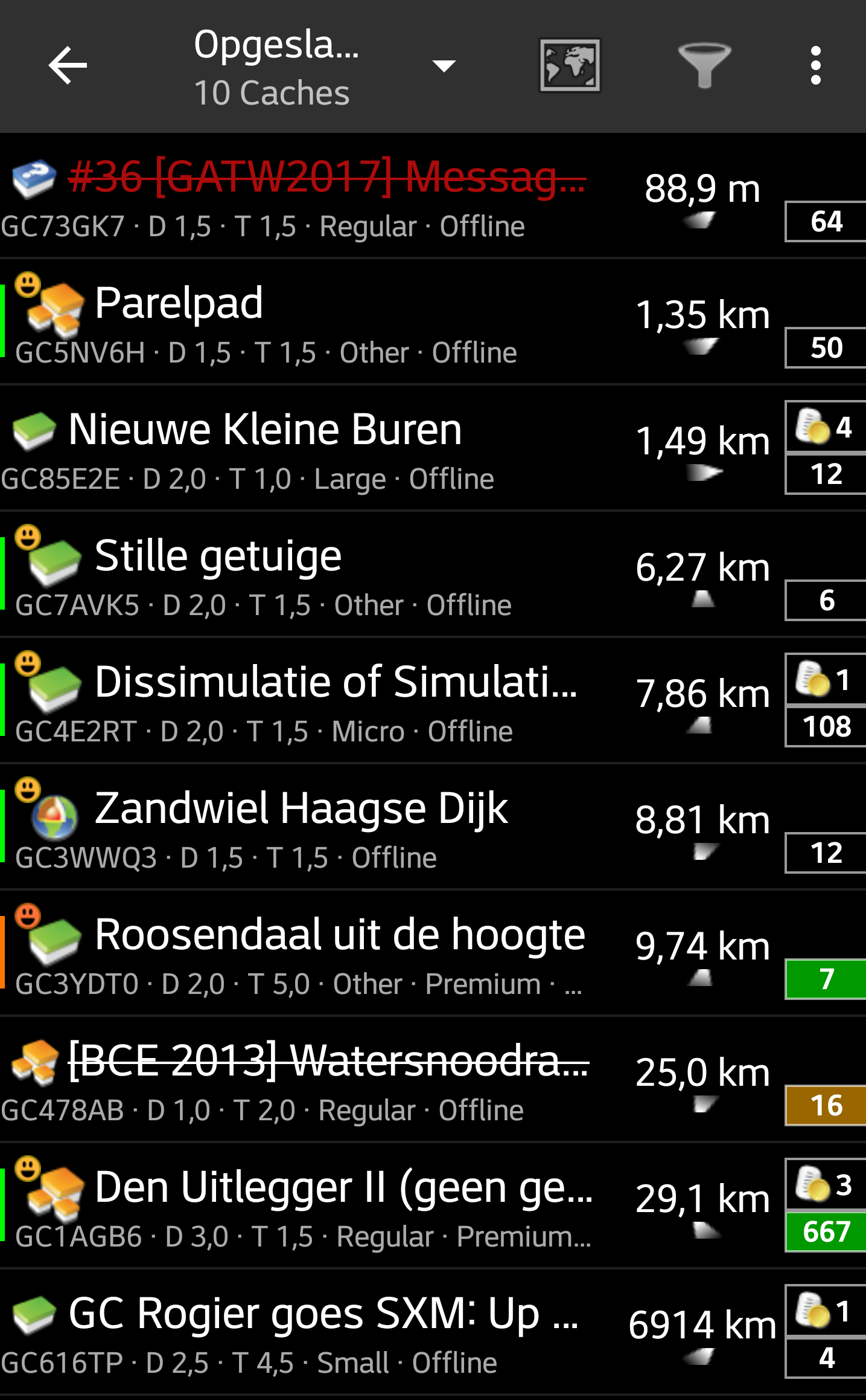 Linkalovers Geplaatst 16 juli 2020 Geplaatst 16 juli 2020 (bewerkt) Ik heb een gps en gebruik C:GEO alleen voor extra offline informatie ( o.a. logs ), als we de cache niet kunnen vinden. Je kan met deze Android app ook naar caches navigeren, maar wat daarmee allemaal mogelijk is: ik heb geen idee. 16 juli 2020 bewerkt door Linkalovers