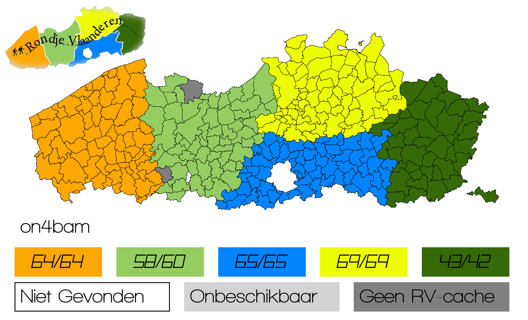 In Belgie hebben we de reeks "Rondje Vlaanderen", "Tour de Bruxelles" en "Tour de Wallonie". Van de RV reeks heb ik er nog 3 nodig waarvan er 2 gemeenten (nog) geen cache hebben. De provinciebonussen en de "superbonus" werden ook al gevonden. De andere reeksen worden "meegenomen" als we er in de buurt zijn maar niet actief verzameld.